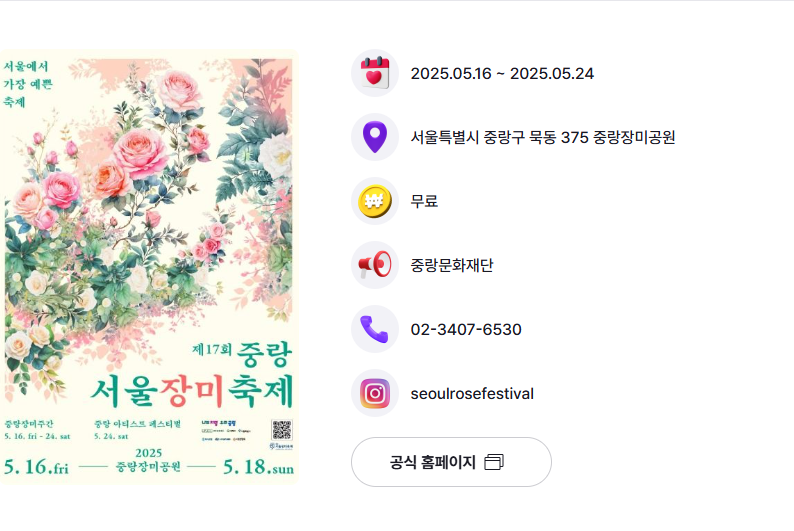 | 🌹 5월에 가볼만한 장미축제 여행지 BEST 5 – 장미향 가득한 봄 여행지 추천 (1) | 2025.05.13 |