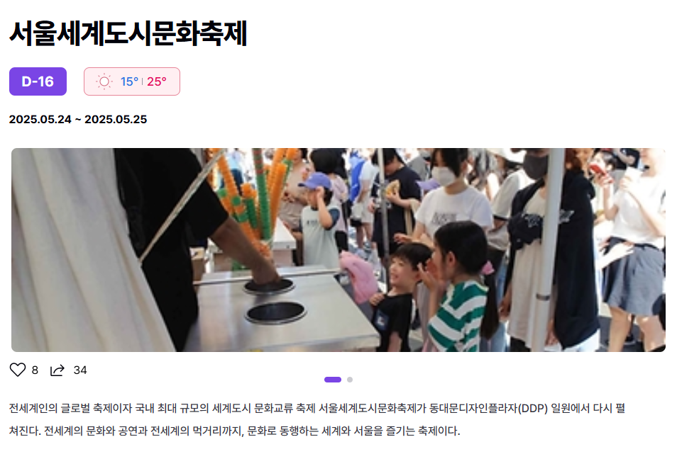 서울 한복판에서 다양한 나라의 문화를 체험하며 즐길 수 있는 특별한 축제입니다.