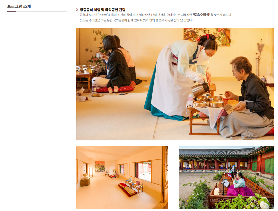 - 궁중음식 체험: 조선 왕의 일상식 ‘도슭수라상’ 제공
