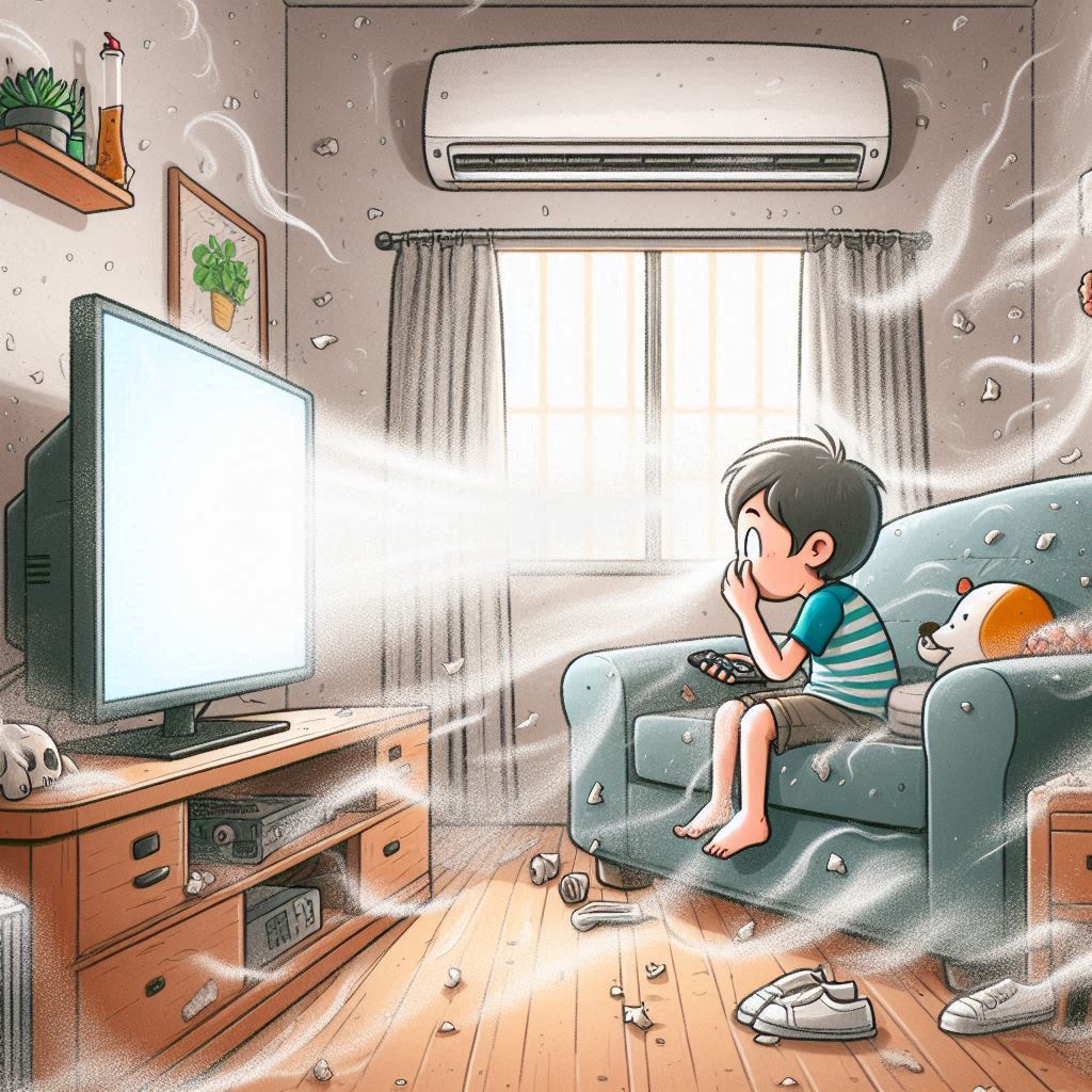 에어컨을 오래 사용하면 내부에는 🚬 담배 연기, 🏙️ 도로의 배기가스, 🦠 곰팡이 등이 쌓여 실내 공기를 오염시켜요. ❌