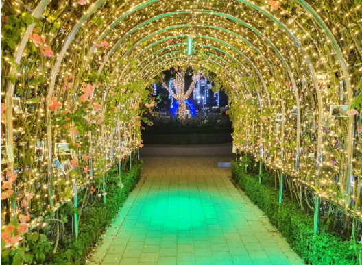 - 장미터널, 하트 포토존 등 LED 조명 연출
