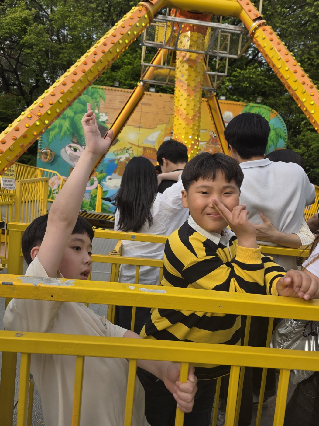 중간엔 그네도 타며 한숨 돌리고, 작은 놀이기구 존으로 이동해서는