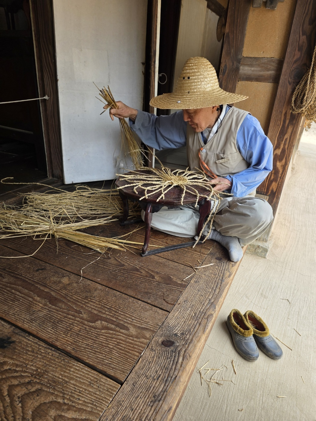 짚으로 새끼를 꼬아 전통 짚신을 만드는 아저씨의 모습도 한참을 바라보았답니다.