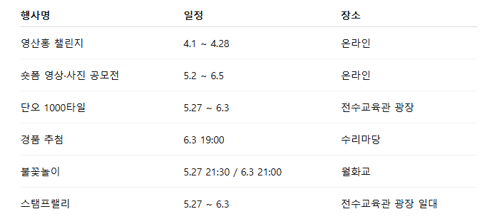 - 특히 **영신행차(5.29)**는 화려한 행렬로 꼭 관람 추천!