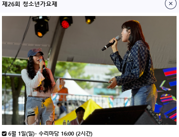 | 청소년가요제 | 6.1 16:00 | 수리마당 |