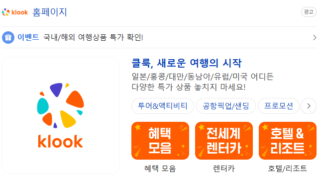 클룩(Klook)은 전 세계 여행 및 레저 활동을 예약할 수 있는 플랫폼으로, 관광 명소 티켓, 액티비티, 투어, 식당 예약을 제공하며 아시아 여행객들 사이에서 인기를 끌고 있습니다.