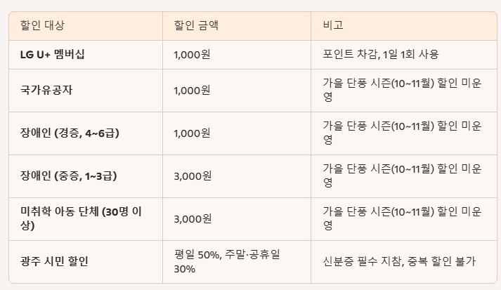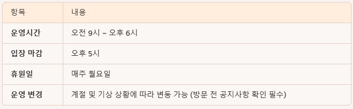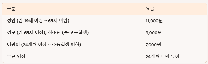 - 입장료: 성인 11,000원 / 청소년·경로 9,000원 / 어린이 7,000원
