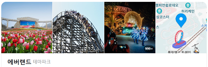 에버랜드는 경기도 용인에 위치한 대한민국 최대 규모의 테마파크로, 삼성물산이 운영하는 '종합 놀이터'입니다. 놀이기구, 동물 체험, 계절별 축제, 퍼레이드까지 모두 즐길 수 있어 아이부터 어른까지 누구나 행복한 시간을 보낼 수 있는 곳이죠! 가족, 친구, 연인과 함께 방문하기 딱 좋은 곳이에요. 🌈