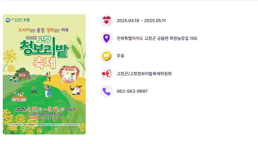 - 장소: 전라북도 고창군 공음면 학원관광농장(보리나라 학원농장)